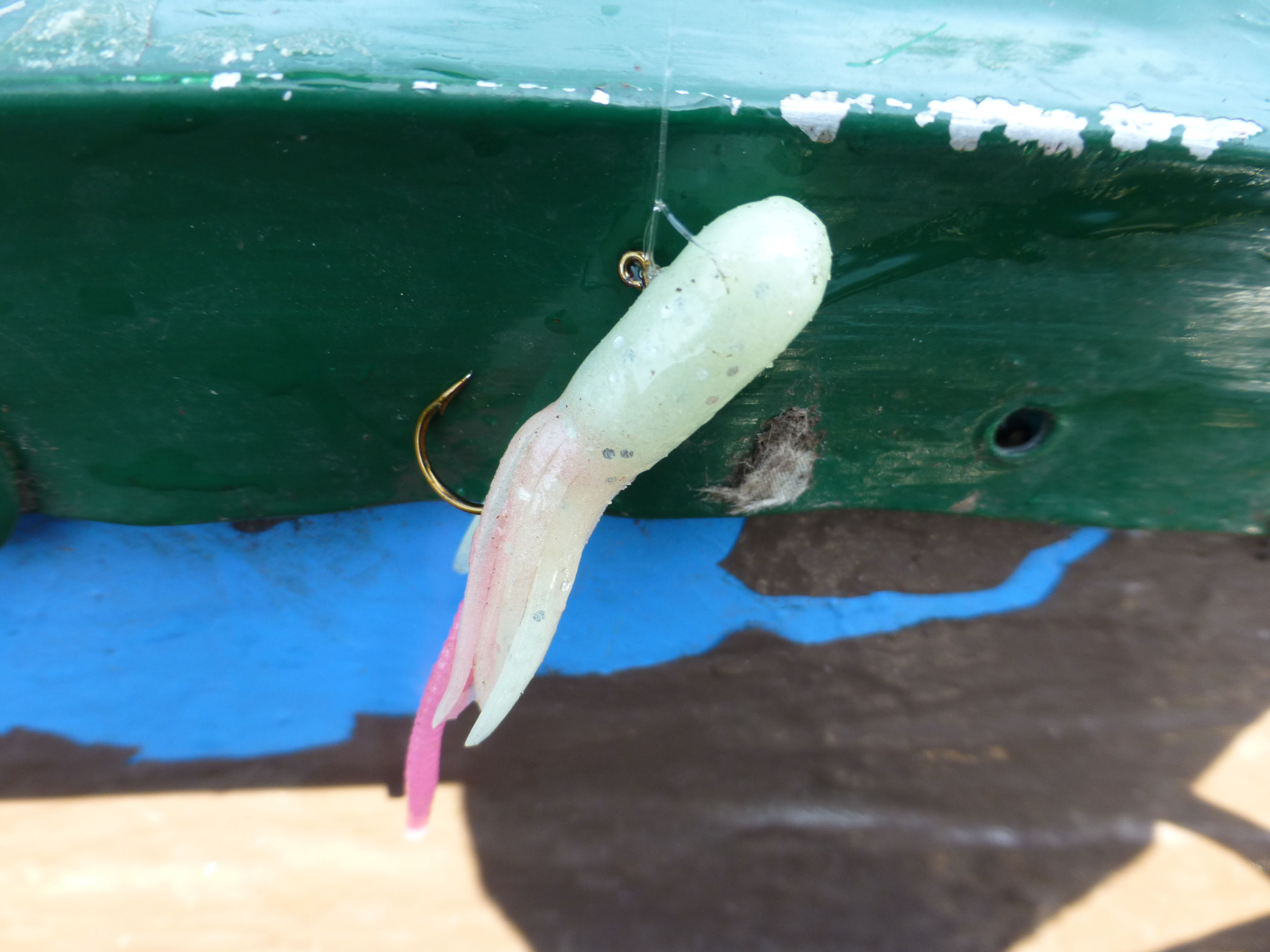 რვაფეხის ქევხო, მასეთებს ქორჭილაზე ვხმარობ ხოლმე, ჩვეულებრივი ჯიგია და წამოცმულია სილიკონის სხვადასხვა ფერის რვაფეხის "ლიფსიტების" ნაირსახეობები.