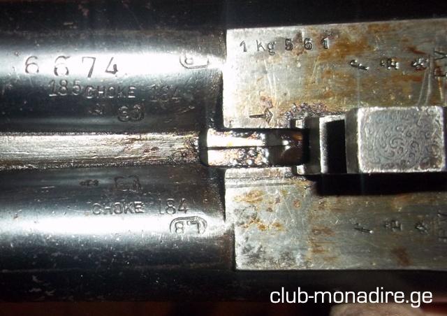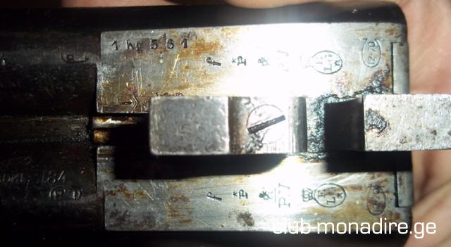Gurulo 154 Posted February 1, 2013 Report Share Posted February 1, 2013 (edited) მწარმოებელი დადგენილია დამატებითი დამღები(ახალი სურათებიდან) დამატებით ინფოზე მეტყველებს: მონოგრამული დამღა LE მეტყველებს პირველადი გამოცდის შესახებ ჯერ კიდევ შეუწყვილებელ ლულებზე; მყარი სამმაგი საკეტი აქვს(ამის დაწერა წინა სურათებითაც შეიძლებოდა_ დამავიწყდა ); კონდახის მედალიონზე შემკვეთის ინიციალებია ალბათ; ლულები დემიბლოკი; "რადნოი" კონდახი და ტიბჟირი; მართალია შემდგომში გალაკული აქვთ ცოტა უხარისხოდ, მაგრამ ეგ არაფერი; სურათებში დაშლის კვალი არ ეტყობა(ერთიორად წევს ფასს); ციფრები 18,4 და 18,5 მეტყველებს შემდეგზე: ლულა კონუსური გაბურღვისაა და სავაზნიდან 22 სანტიმეტრში შევიწროებულია 0,1მმ-ით; აგრეთვე აწერია ლულის წონა: 1,561კგ(ამის მიხედვით ვაზნის შერჩევაა შესაძლებელი); თუ ამ სურათზე მოხაზულ დამღებს კარგად დამანახებ, იქნებ ლულის ფოლადის მარკაც დაგიდგინო ეჭვი მაქვს რომ ასეთი დამღაა და მაშინ ქე წეიკითხე რაც აწერია სურათზე Edited February 4, 2013 by Gurulo ციტირება Link to post Share on other sites