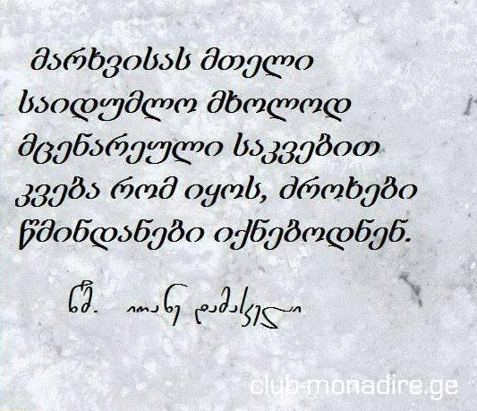 - ვერ ვიტყვი, რომ ბოლომდე დარწმუნებული ვარ, რადგან სხვისაგან მოვისმინე.