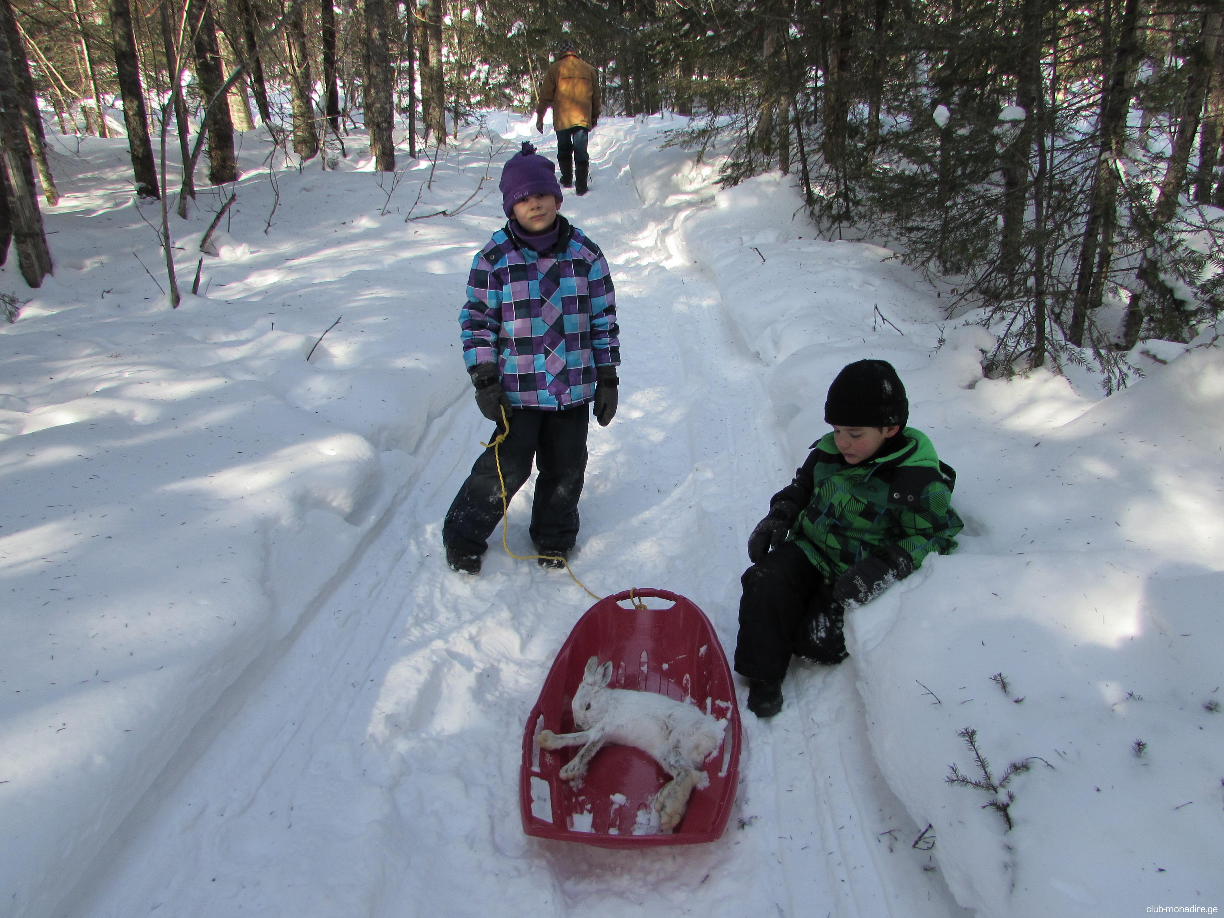 მეგობრის მშობლები ამ ქალაქიდან სამი საათის სავლელ მანძილზე ცხოვრობენ უფრო ჩრდილო-დასავლეთით. ჰოდა იმ რეგიონში იყიდეს მონადირის სახლი 25 000$-ად. ესენი ორივე ცოლქმარი ნადირობს და თევზაობს. ამ კვირაში მეგობარი ბავშვებთან ერთად იყო წასული ამ ადგილის სანახავად. 10 კმ თოვლმავალით იარეს. ტბა კალმახიანი ყოფილა. ცხენირემის კვალი იმდენი იყო, ფერმა გეგონებოდაო. ჟრუნიც უნახავთ და მარყუჟებიც დაუგით. სამი კურდღელი გაუბამთ.