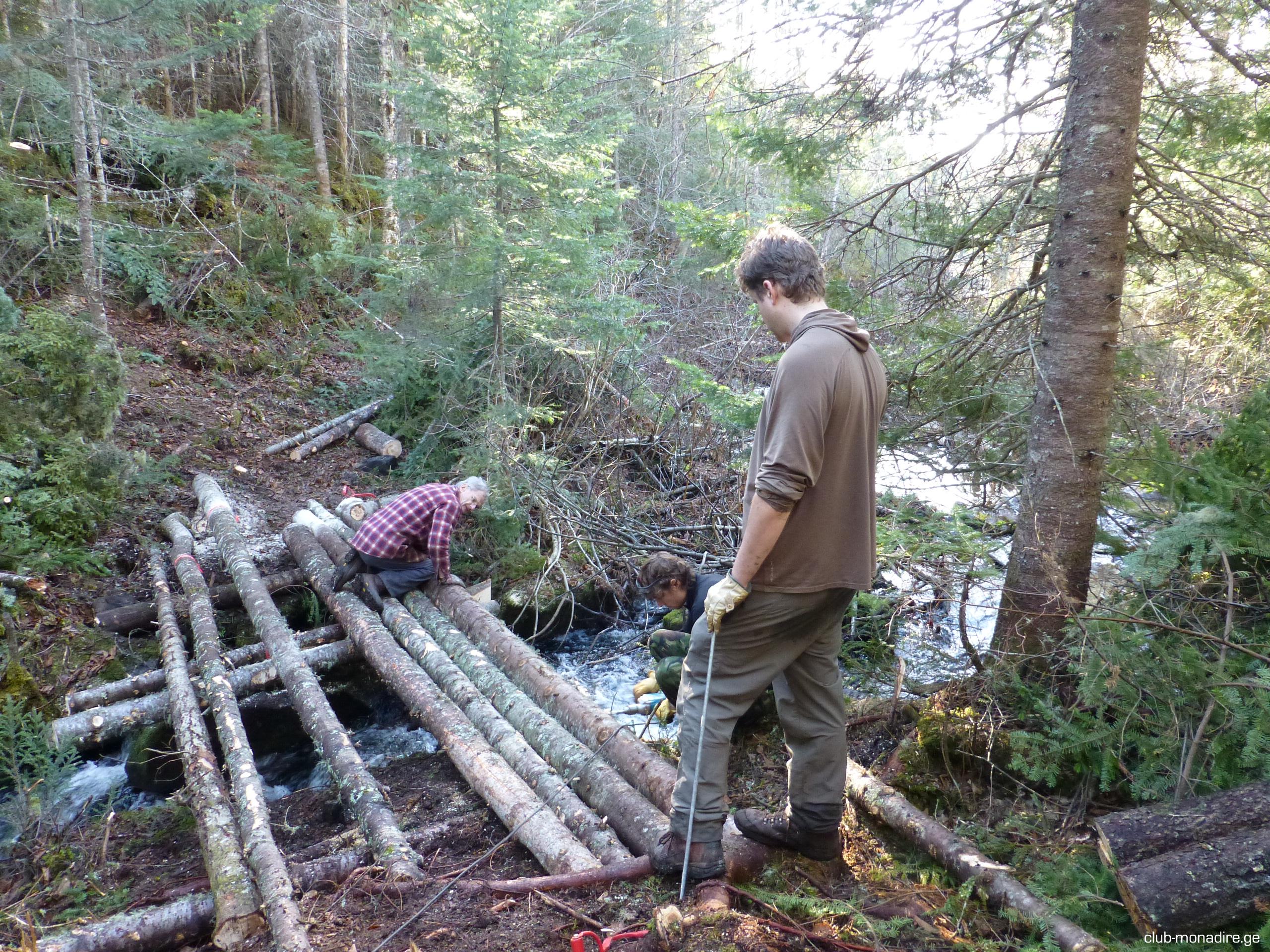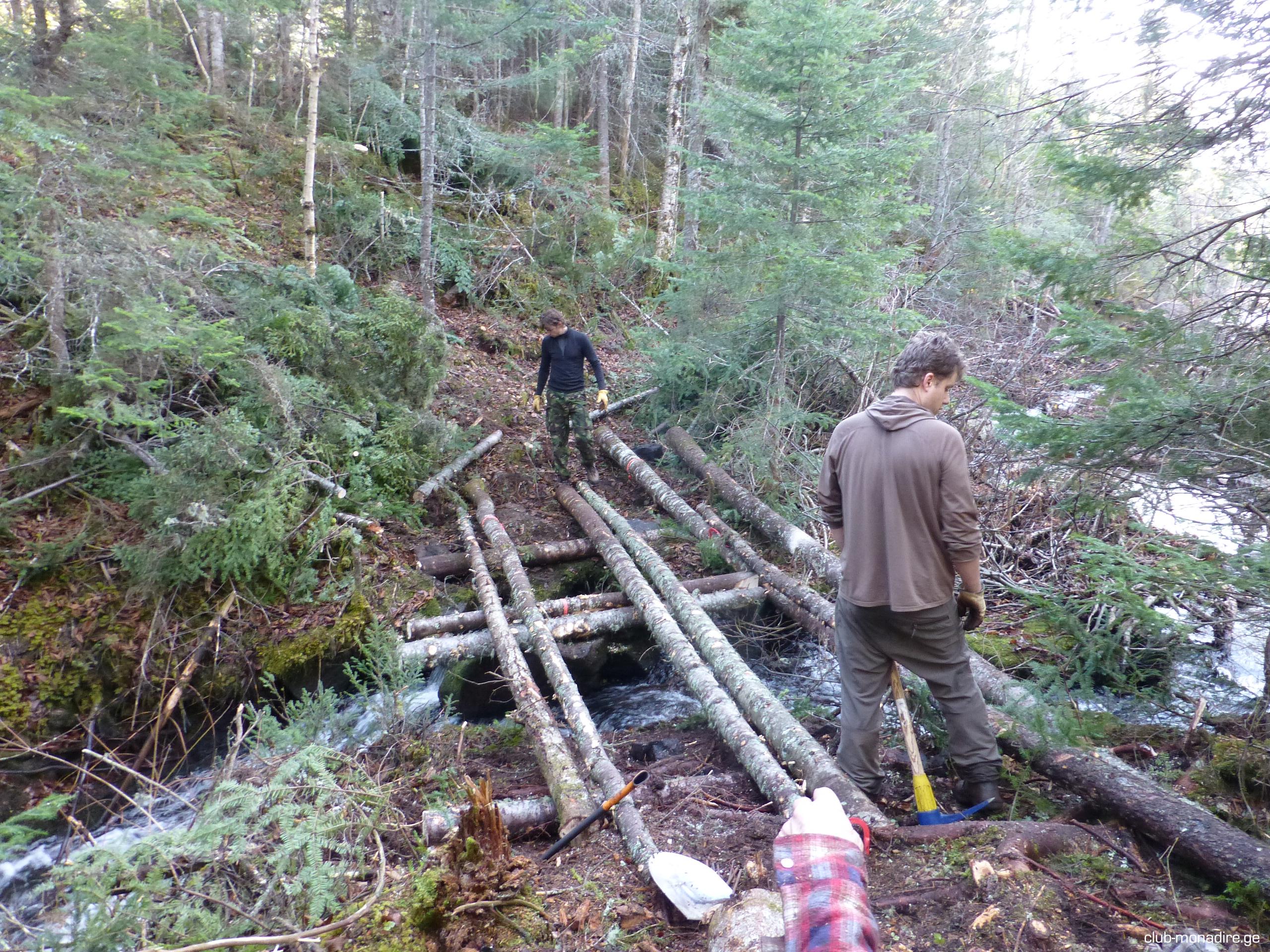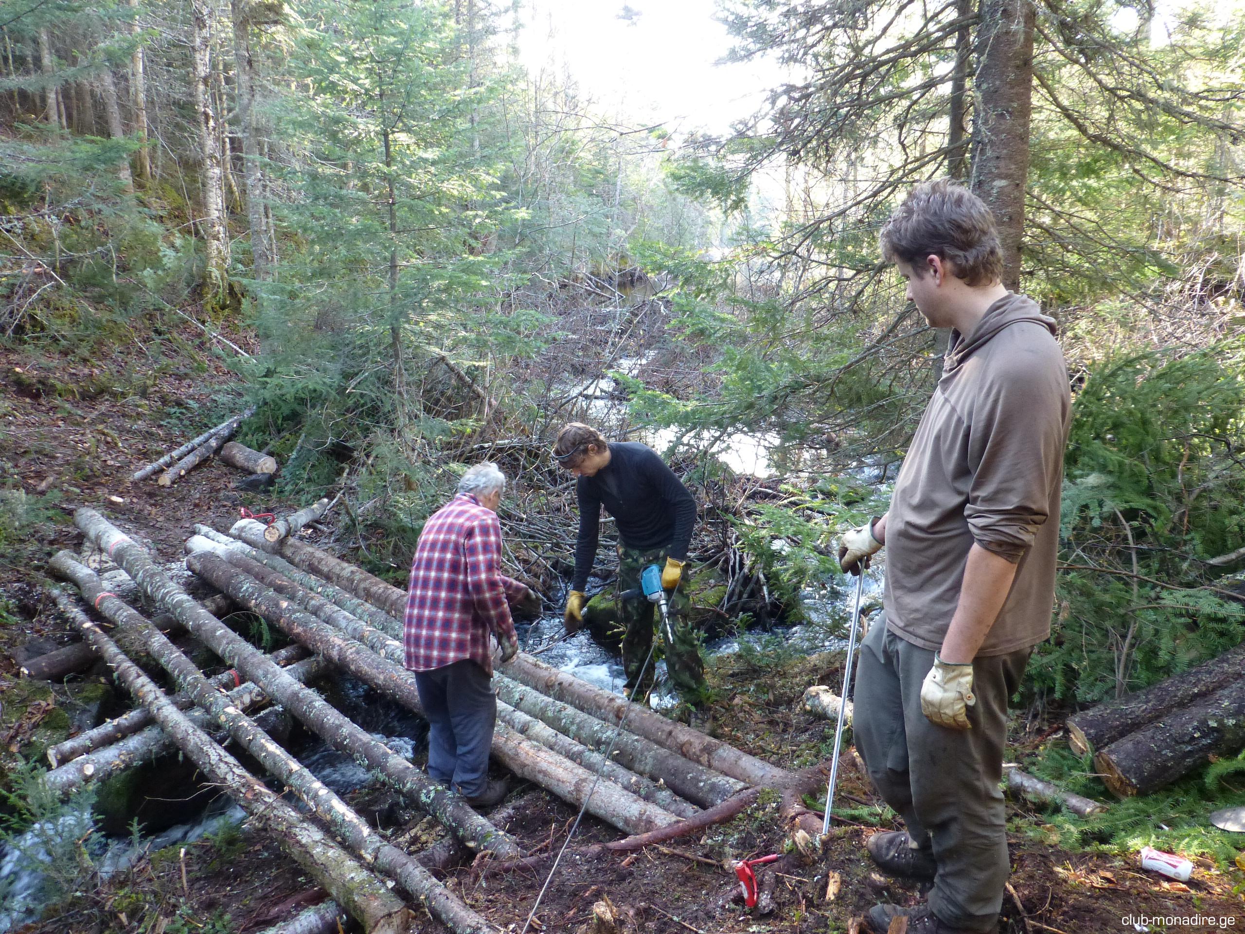 BROWNING 349 Posted November 1, 2012 Author Report Share Posted November 1, 2012 ოთხივე მორს ხვრეტენ ბურღით თავებიდან ასე 40-50 სმ დაშორებით. მერე ოთხივეში გაუყრიან მეტანის ხრახნიან შტირს, რომლის ტავებშიც მეტალის ''პრაკლადკა'' და ბოლტი მაგრდება. ამ შეკრული მორების ორივე თავებში ასევე შტირებთან, ტრისის ტავებია დამაგრებული და ეს ტროსი მერე დაიჭიმება. შარი რა. უნდა გაგვექერქა მორები, მაგრამ გვიანია და კანი არ სცილდება კარგად, თუმცა ერთი ათი წელი ხო გაძლებს და... ეეეუუფფფ, ეგ ბრიგადა მომცა და მერე ნახამთ თქვენა. პ.ს. ეს ყველაფერი კარგი, მაგრამ რითი გადააბეს ერთმანეთთან ის მაინტერესებს. ერთ სურათში სჩანს რომ გრძელი ბურღით ჯერ ნახვრეტს აკეთებს მორში და მერე რაღაცას სტენის შით. ციტირება Link to post Share on other sites